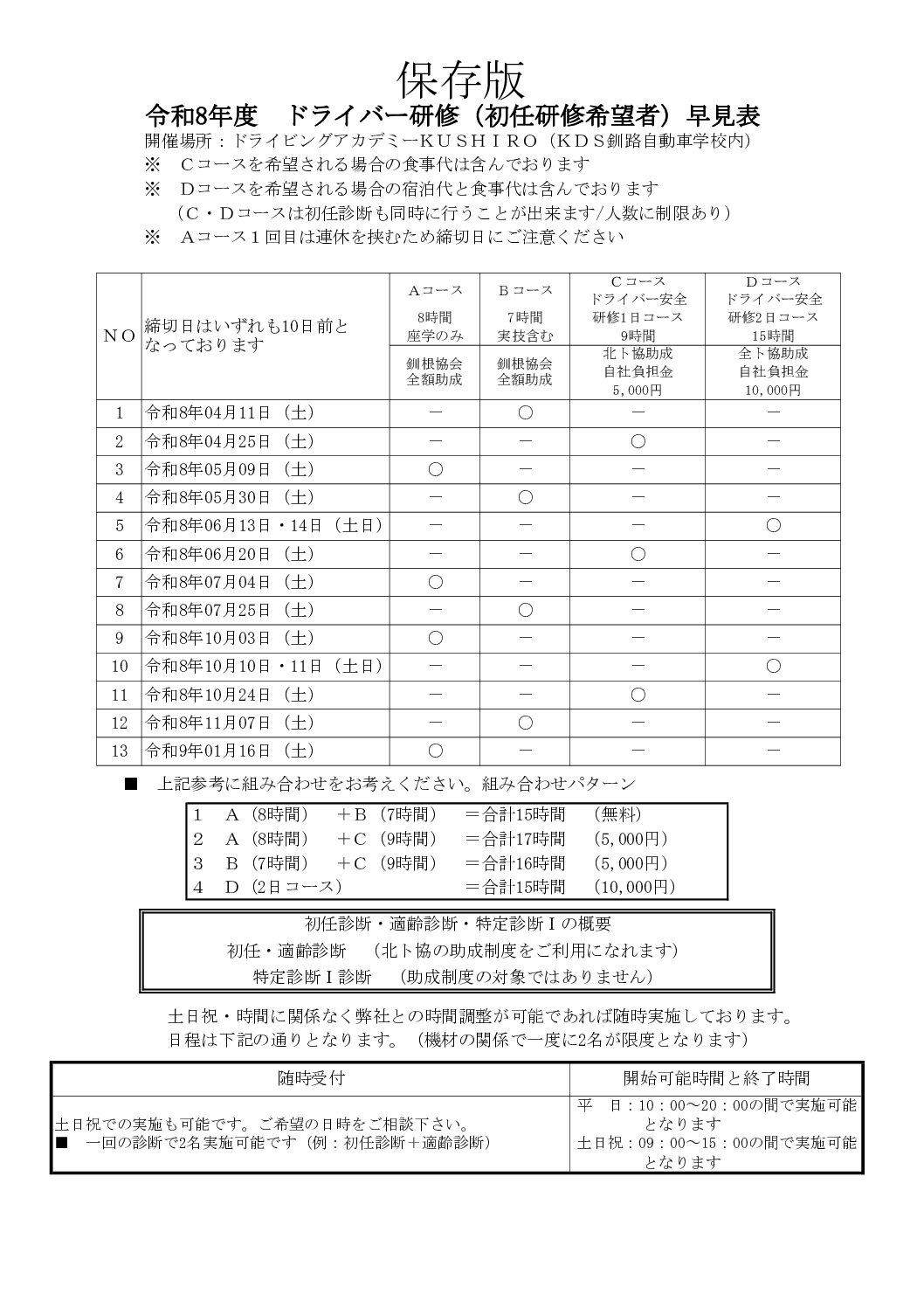 令和8年度ドライバー等安全運転研修のご案内(DA釧路)